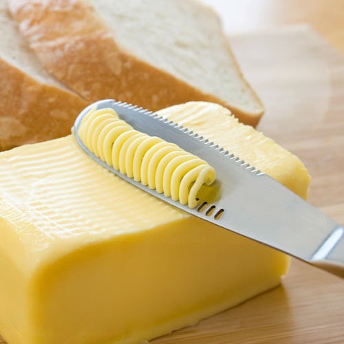 Make it easier to spread cold butter on your toast with this ingenious butter knife. It features slotted holes along the blade to create butter curls, allowing you to spread it on bread without ripping your toast. You can also use the knife to cut butter strips and slices.