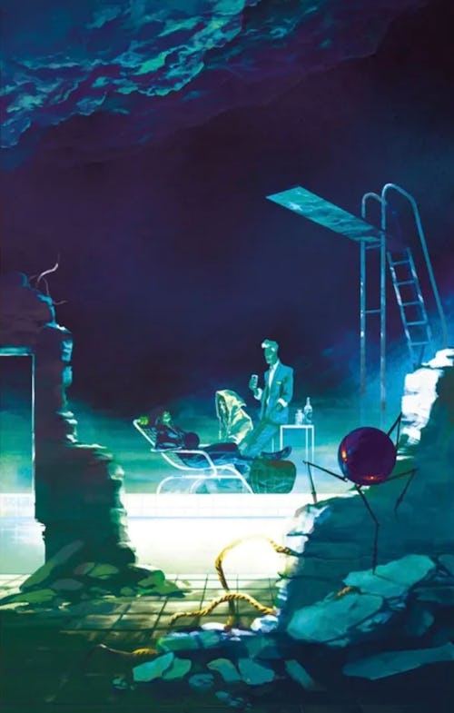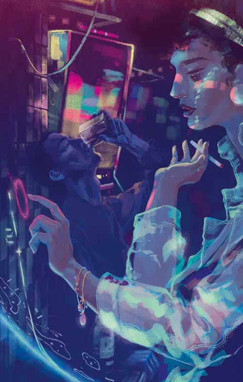 The new Neuromancer is no exception. If the Apple TV+ series is looking for inspiration, the interior art from illustrator Anna Mill should now be the gold standard of how we envision the characters of Case, Molly Millions, Armitage, and Maelcum. In addition, the environments of The Sprawl and Chiba City are rendered in a timeless style, with touches of retro sci-fi paintings that aficionados might associate with the work of Chris Foss or Michael Whelan. That said, Mill’s illustrations don’t go for any kind of full realism, and in rendering the titular AI “Neuromancer,” she imbues it with a perfect amount of surrealism.