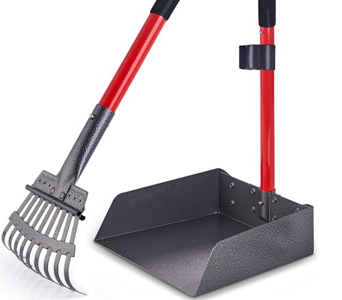 Picking up dog poo is an unpleasant task but this pooper scooper makes it a lot easier on your back. It’s fast, too. Walk through the yard, raking the poo into the tray, and dump it all at once into the trash. The kit stands ready with the rake clipped to the handle to do it all again another day. It’s useful for picking up pine cones and other yard debris, too.