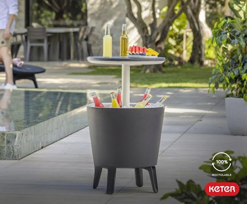 Create a pop-up bar on your deck by filling this beer and wine cooler with ice and beverages. The top offers a tabletop for setting plates and drinks on and everyone can help themselves to cold drinks from the open cooler. It looks stylish, too. A drain in the bottom makes it easy to empty when the party is over. It comes in two colors.