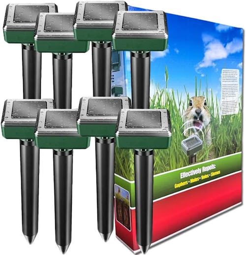 Burying an empty wine bottle so the wind makes it hum to irritate gophers into leaving is an ancient method of ridding a lawn of these burrowing lawn destroyers. This solar-powered mole and gopher repellent is a much more effective way of achieving the same thing. The vibration it creates annoys the varmints so much, that they immediately start packing and looking for a new neighborhood. “I was skeptical at first but I have to say they work! I have a chipmunk problem, they dig around my house and under my porch. I put these in and after about a week I noticed they were not digging,” said one reviewer. This is a pack of eight.