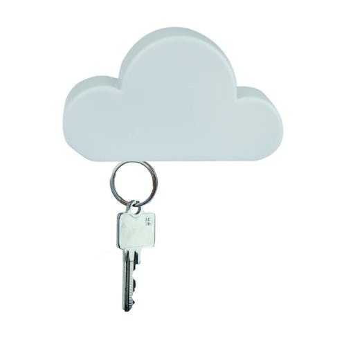 Mount this cute white cloud magnetic key holder near the front door so you always know where your keys are. It has three powerful built-in magnets and can hold up to three iron key rings securely. The whimsical cloud has a self-adhesive backing and can be attached to lots of different surfaces including ceramic tile, metal, glass, and wood.