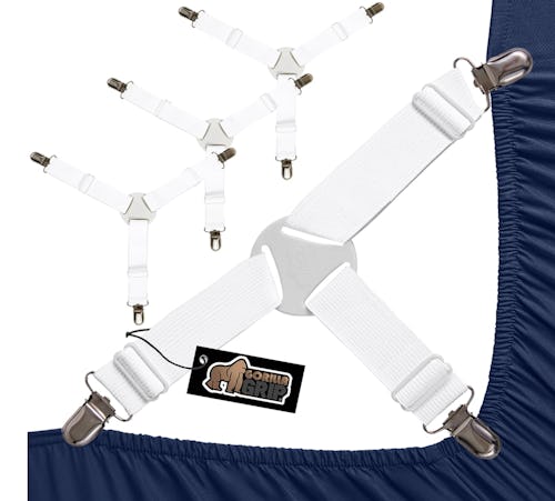 Secure a fitted sheet firmly in place using these genius bed sheet straps. They are made from stretchy elastic that won’t snap and use metal clips to hold fitted sheet corners without snagging the fabric. You also won’t have to fully flip your mattress to use them. The straps are adjustable and fit any size bed sheets, from twin to California king.