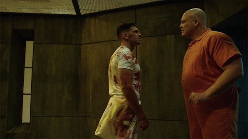 Frank is a capable assassin, but he’s still just one man fighting an army. He’s captured and confronted by Officer Powell (Hamish Allan-Headley), who tries and fails to get Frank on board with their twisted brand of justice. The next time we see the Punisher, he’s locked in a cage at Fisk’s headquarters, along with anyone else who had the guts to stand against him.