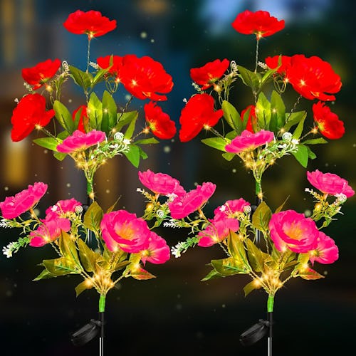 Granted, they look like camellia flowers in your choice of pink, red, or yellow, these solar-powered lights effortlessly blend into your garden — but the bright LEDs are woven into the stems to illuminate the buds from within. They come on 12-inch aluminum stakes with upgraded solar panels that are designed to absorb more sun for longer-lasting light.