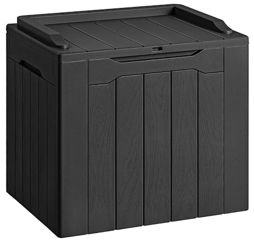 While it looks like wood, this patio storage box is actually made from high-density resin, which is waterproof, UV-resistant, and lightweight. Still, it stores up to 30 gallons of pool toys, cushions, and other outdoor essentials, and it doubles as a seat thanks to its 220-pound weight capacity. It’s also lockable with built-in handles for security and portability.