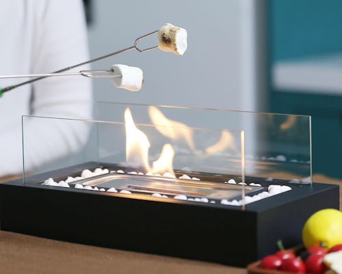 Make outdoor evenings feel like a trip to the mountains, thanks to this tabletop fire pit that creates cozy ambience. The flame rests on a bed of rocks and there are two protective panels on both sides — just add rubbing alcohol to the center to ignite. You’ll even get roasting forks for marshmallows.