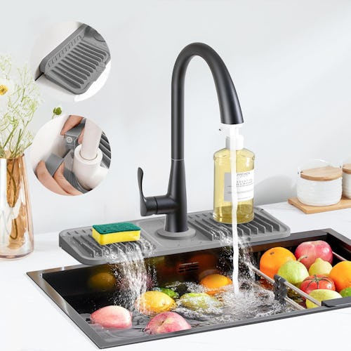 This flexible silicone mat is right at home behind your kitchen or bathroom sink (just be sure to measure before purchasing). This helps collect water that splashes, leading to a dry countertop and less cleanup for you. Raised edges on either side are the perfect spot for sponges or soap, and it allows water to drain though right into the sink.