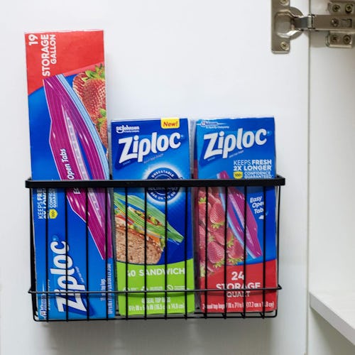 This organizer rack might be a simple concept, but it’s a really helpful one. The adhesive backing allows you to attach this to a wall or the inside of a cabinet, and creates the perfect space for stashing kitchen wrap boxes or smaller cleaning supplies. It’s durable and it helps keep your cabinets neat and organized.