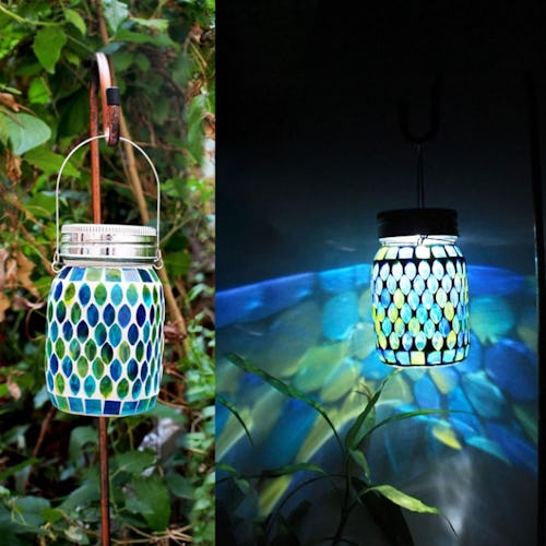 This mosaic solar light is a striking piece of practical decor. It glows in different colors and, thanks to the mosaic pattern all around, gives off a beautiful light pattern on your table. It also comes with a handle so you can hang it. And because it’s solar powered, it charges throughout the day and requires zero wiring.