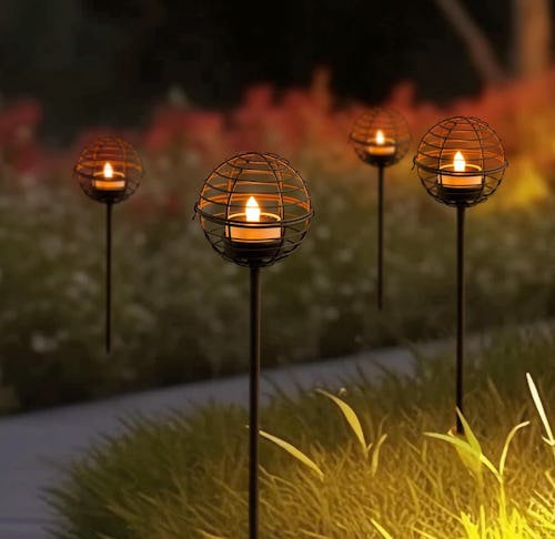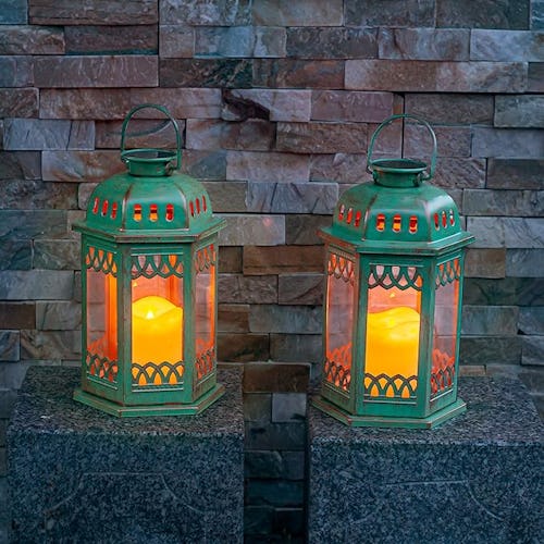 These hanging metal lanterns are both decorative and functional. They look fantastic hanging or sitting on a tabletop, and give off a soft glow that adds nice ambiance to your space. Solar panels on top charge them throughout the day, and they turn on automatically at dusk and off at dawn. And while the candles inside might not be real, they offer a flickering flame that looks very realistic.