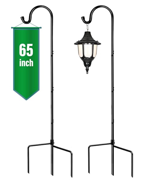 Crafted from heavy-duty steel, these two shepherd’s hooks support up to 8 pounds each and offer three adjustable height options ranging from 33 inches up to 65 inches. The three-prong base enhances stability, while the anti-rust coating ensures durability in outdoor environments. These make a snazzy home for planters, bird feeders, solar lights, and lanterns.