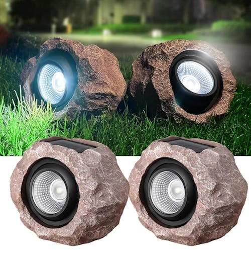 Bright solar lights disguised as rocks in your garden