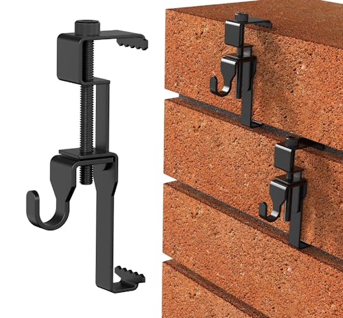 Don’t let brick walls stop you from decorating – these six stainless steel clips make it a breeze. Corrugated hooks clamp onto the bricks with no drilling or damage required, and the center is adjustable to fit most bricks. Once clamped on, the hanging hook holds decorative objects and more — and they’re also a breeze to remove.