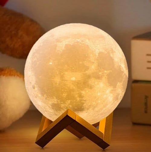 This night-light uses 3D printing technology to project a realistic moon surface directly onto the spherical lamp. It can be controlled with a remote to change up to 128 colors or a physical button which can switch up to seven colors. It charges via USB and has up to 12 hours of use on a single charge.