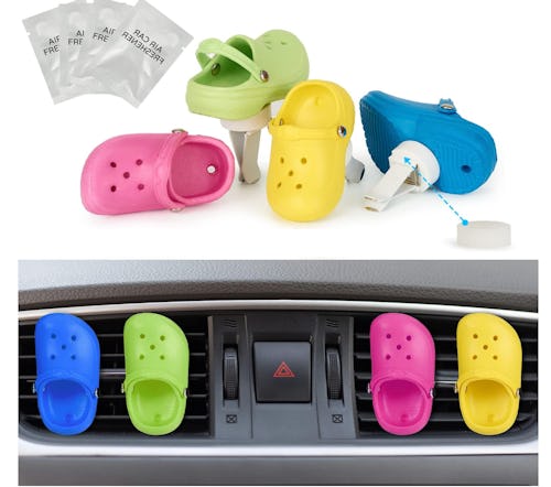 Clip-on car air fresheners shaped like fan-favorite clogs