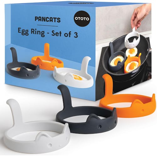 These egg rings are 4 inches wide and made of nonstick silicone that you can crack an egg into and create perfectly portioned and shaped fried eggs every single time. They’re shaped like little kittens with ears and eyes and a tail that you can use to remove the ring when it’s time to flip or eat. They’re also great for pancakes.