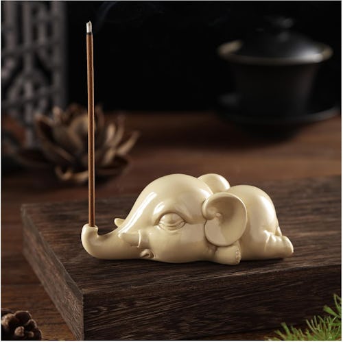 This incense burner adds the “fun” to “functional.” Shaped like an elephant lying on its belly, the burner holds an incense stick in its trunk to keep it upright while it burns. It’s made of resin and comes with a large silicone pad that’s designed to catch and contain ash so your home can smell great without the mess.