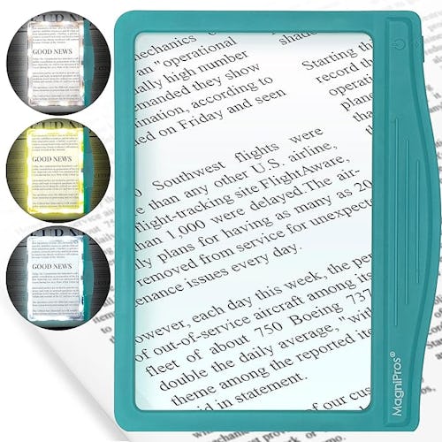 “The lighting is adjustable and is nice and bright. I can see across the whole page of a book which I could not do with a round magnifying glass. Light weight too,” one shopper wrote about this book magnifier. It has an extra large viewing area — about 8 inches wide and 4.5 inches tall — and it has a built-in LED light with three color temperatures to choose from. It’s super lightweight and battery-powered.