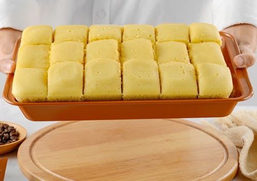 The best brownies are the ones on the edge, and with the help of this pan every brownie can be an edge brownie. This bakeware is nonstick, and cleverly, it comes with a divider. Not only does this divider ensure everyone’s treat is the same size, it also makes all four corners of all 18 brownies the edge.