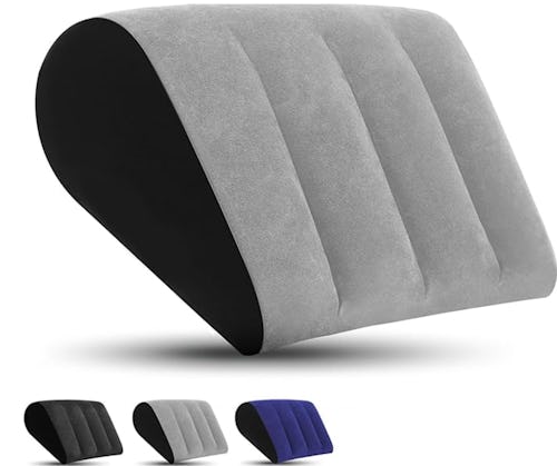 Made of high-quality plastic with a velvety surface, this pillow can be taken with you anywhere. It starts off small and has an inflatable design so you can blow it up to use no matter where you are. The wedge style is great to lift your head or ease back, knee, and leg tension. It can be filled in just 30 seconds and deflates very quickly.