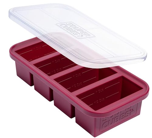 This silicone mold is great for storing soup, sauce, and other leftovers in the freezer. Each of the four compartments come pre-measured with fill lines for 1/2 cup and 1 cup so you know exactly the portion size inside. And it comes with a see-through plastic lid to prevent spills and allow you to stack things on top to increase freezer storage space.