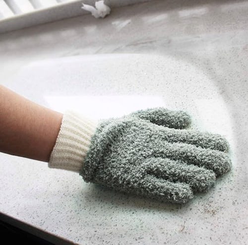Microfiber gloves that attract & trap dust & hair for easy cleaning