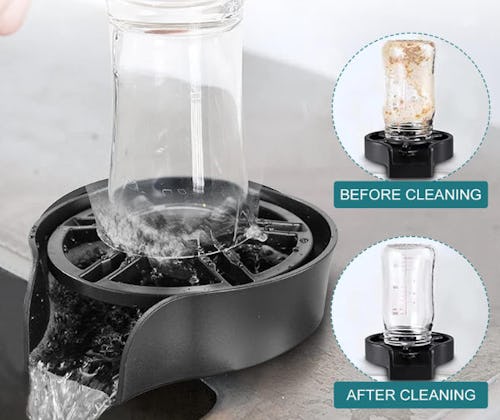 Hand-washing glassware can be tedious, but luckily, this glass rinser for the kitchen sink is here to save the day. It uses high-pressure water jets and a 360-degree spinning mechanism to thoroughly clean drinking glasses and remove residue in seconds. A pull-out sprayer offers added flexibility. To start using the rinser, simply connect it to your kitchen sink.
