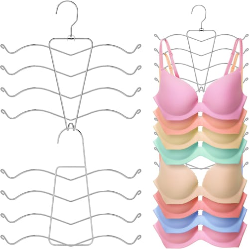 Storing bras and tanks neatly is so much easier with this bra hanger, which can be used combined as one piece or separately as two. It provides the perfect shape to hold bras in a way that won’t allow them to get bent or misshapen. It also keeps what’s hanging on display so you can easily find what you’re looking for.