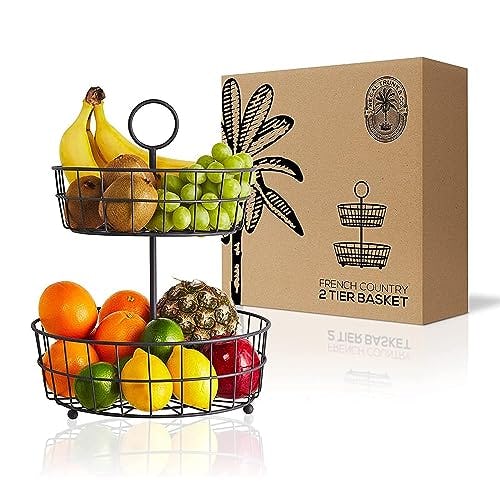Regal Trunk & Co 2 Tier Fruit Basket - Metal Wire Fruit Organizer Bowl Stand for Kitchen, Center Table, Living Room - Metallic Tiered Fruit Holder for Countertop or Hanging, Ideal for Fruits, Veggies