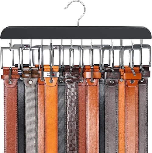 Belt and tie collectors, this one is for you: This sturdy black hanger can hold up to 42 items in its small footprint, keeping them neat and organized without taking up a lot space. This hanger also makes a tidy display of your ties and belts so it’s easy to find exactly what you’re looking for.