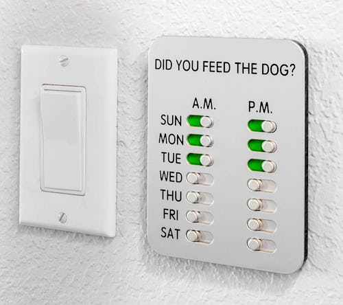 The minute your canine roommate realizes that you and the other humans in the home have no way of knowing who fed them, you will all get played for more meals. This “Did you feed the dog” reminder is the system that will foil these dog con artists — or help when your memory is spotty. After you feed your pet, simply flip the toggle to keep track. It also comes in options for tracking whether you fed the cat, brushed your teeth, and other tasks.
