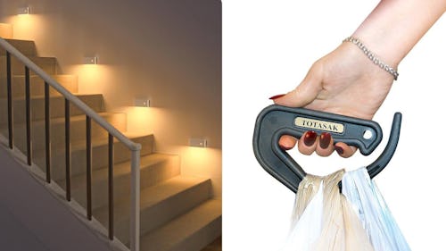 These genius grocery bag carriers make shopping day so much easier. Instead of making many trips from the car to the kitchen, loop all the bags onto this ergonomic handle. It distributes the weight so your hand doesn’t get crushed and you can carry more at once. They are great for carrying buckets and paint cans, too.