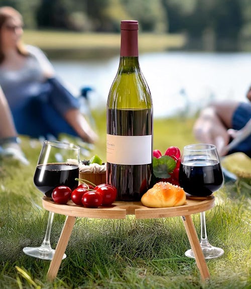Amazon -Next time you take wine and snacks to the garden, beach, or park, let this foldable table elevate your experience and keep your refreshments from spilling or being overrun by ants. It has clever cutouts to hold stemmed wine glasses upright, along with built-in sections that are perfect for arranging charcuterie and a bottle of wine. The legs fold down, and it weighs just around 1.5 pounds, so it’s easy to bring along.