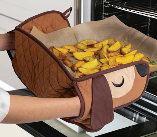 This pup-inspired oven mitt is designed to look like a dachshund and has a quilted texture and wraparound design that can protect your hands from the heat of a casserole dish. It’s heat-resistant up to nearly 500 degrees and comes with a convenient hanging loop so you can keep it accessible. Plus, it’s machine-washable for quick clean up.