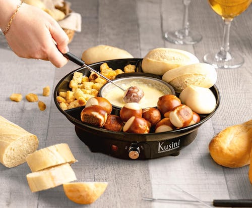 This electric pot is a wallet-friendly way to enjoy fondue or melted chocolate at home. The electric pot features a 10-ounce melting bowl, a segmented tray, and four skewers, so it has everything you need to get started. The tabletop device offers multiple temperature settings so you can choose to melt foods like cheese or simply keep sauces and dips warm.