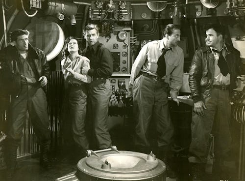 This being the early 1950s, it’s the sole female presence, Dr. Lisa Van Horn (Osa Massen), who wrongly gets the blame. “For what? For momentarily being a woman?” Dr. Eckstrom (John Emery) asks after she meekly apologizes for daring to question her male colleagues. If that wasn’t enough, Bridges’ Colonel Graham later argues that cooking, sewing, and bearing children are all the opposite sex is cut out for. Still, the fact that a woman was even allowed on the expedition was relative progress, given that Destination Moon had an all-male crew.