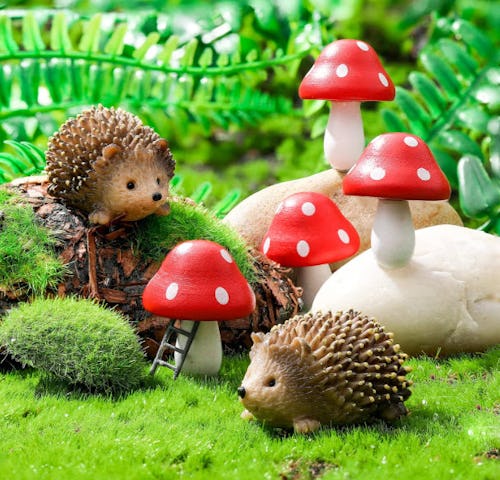 These small resin hedgehogs will brighten up any backyard easily. Arriving in a six-piece set, you’ll receive two hedgies alongside four big, bright mushrooms that you can assemble however you like. The handmade set is both waterproof and fade-resistant.