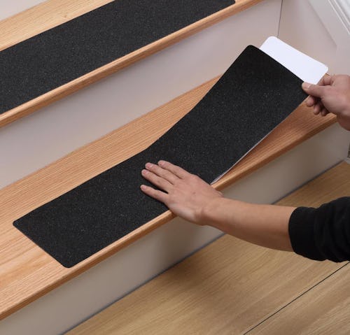Add safety to your steps with this eight-pack of nonslip stair treads. Each pre-cut tread has a strong adhesive on the back that will withstand the weather. You can choose the size you want, and also choose between black treads, clear treads, and treads with a glow-in-the-dark strip for added nighttime visibility.