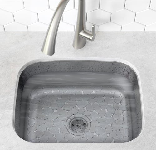 These popular pebble mats serve a few different purposes. They help prevent glassware from accidentally breaking if they tip over in your sink, they keep your sink protected from scratches and grime, and they function is a draining mat for freshly cleaned dishes, too. They’re easy to clean, trimmable, and come in 10 different colors.