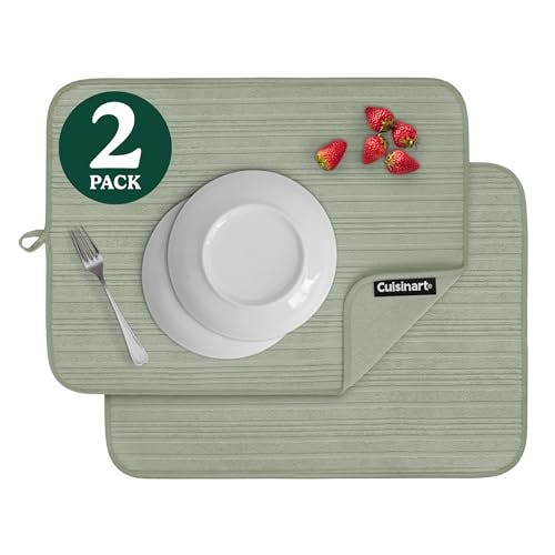Cuisinart Dish Drying Mats for Kitchen Counter - (2) 18" x 24" Ultra Absorbent Dish Drying Mat XL - Foldable, Machine Washable, Fast Drying Dish Mat (Horizontal Stripes)