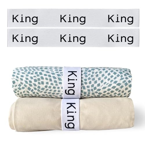 Niagara 2 Pack Bed Sheet Organizer and Storage Label Bands - Fully Elastic Stretchable Linen Closet Organizers and Storage - Bed Sheet Organizer Bands for Bed Sheets, Duvets, Quilts, Linen (King)