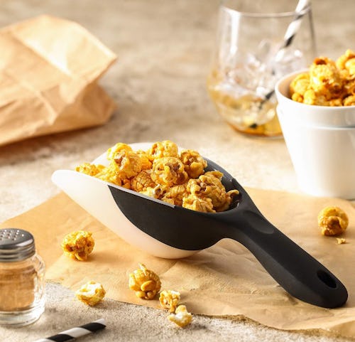 The handle of this ice scooper is magnetic, allowing you to attach it to your freezer for storage between uses. It’s made from BPA-free plastic with a slightly flexible head (which holds about a cup) for pouring into narrower glasses and containers.