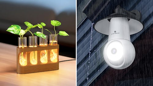 This beechwood plant propagation station features fun LED lights and instantly upgrades a windowsill or shelf. It’s simple but stylish, with test-four tube-style glass vases that make plant cuttings look like little works of art. Easy to set up and fun to use, it’s a must for plant lovers and propagation newbies alike.