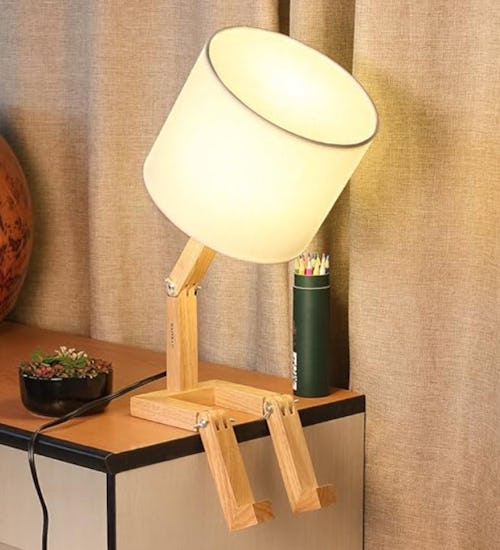 Sit this adorably creative and modern desk lamp on any desk for a cute way to add some light to your space. Working with E26 bulbs, which aren’t included, this natural wood lamp can be shaped to look as though it’s sitting on a desk or a stack of books. It’s equipped with an on/off switch that’s easy to use, and may very well be the thing you never knew you wanted until now.