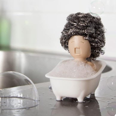 Liven up your kitchen sponge game with the use of this clever bathtub sponge holder. Its unique design adds a fun touch to the sink area while helping sponges dry faster, which means less mess and fewer odors. While it works with multiple sponges, it comes with one metal scrubber that perfectly fits the hair of the character taking a bath.