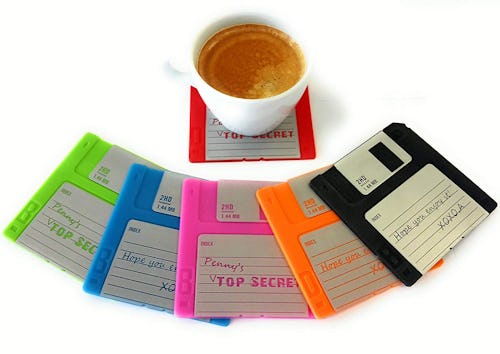 These floppy disk coasters have a retro design and can protect tabletops and other surfaces from hot and cold beverages. Distinctively, they have blank labels where you can write your own notes and messages, whether you want to tell someone good morning or come up with computer puns. The colorful coasters come in a pack of six and are durable, flexible, and waterproof.