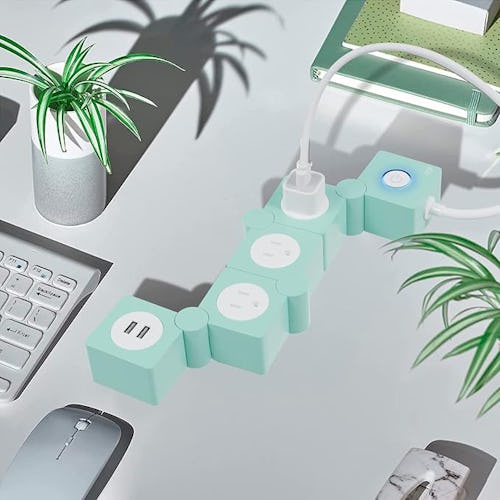 Create more charging opportunities with this flexible power strip. Perfect for small spaces, the power strip features five connected blocks that can be adjusted to fit around furniture or electronics. The strip comes with a 5-foot power cord, 3 AC plugs, and two USB-A plugs, and since everything is compact and lightweight, it’s easy to take on-the-go.