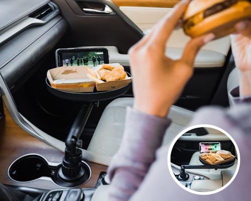 If you’re eating on-the-go, this cup holder tray is a mind-blowingly clever way to be more comfortable. The tray features an adjustable mount that works with almost any type of cup holder, and it swivels a full 360 degrees, so can adjust it to the ideal position. Plus, it comes with a smart phone holder so you can watch your favorite videos while you park and chow down.
