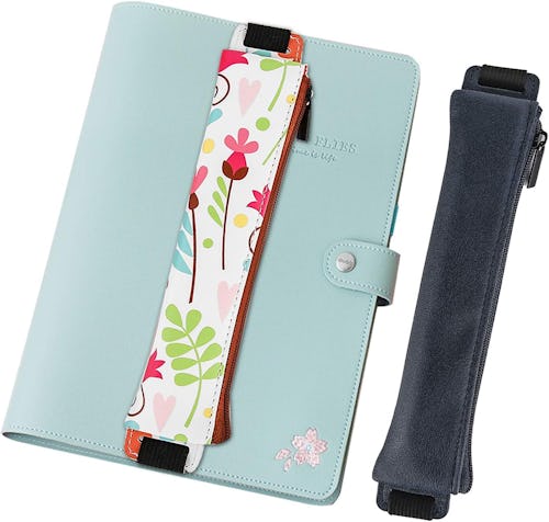 If you’ve ever lost track of your pen and pencil, these clever zippered pouches are for you. Each case features a zippered pocket that can hold multiple pens or small items like headphones. Made of PU leather and stretchy elastic, the pencil cases fit easily over notebooks and planners, keeping essential items accessible.